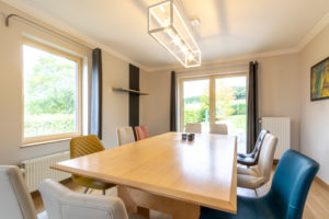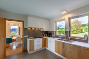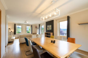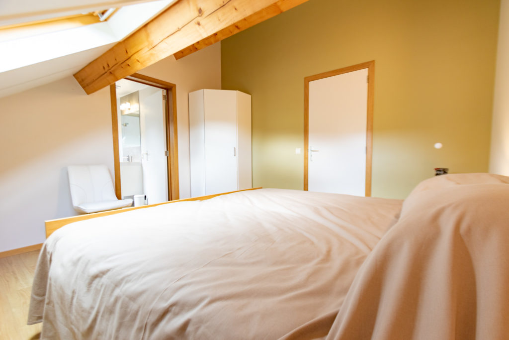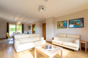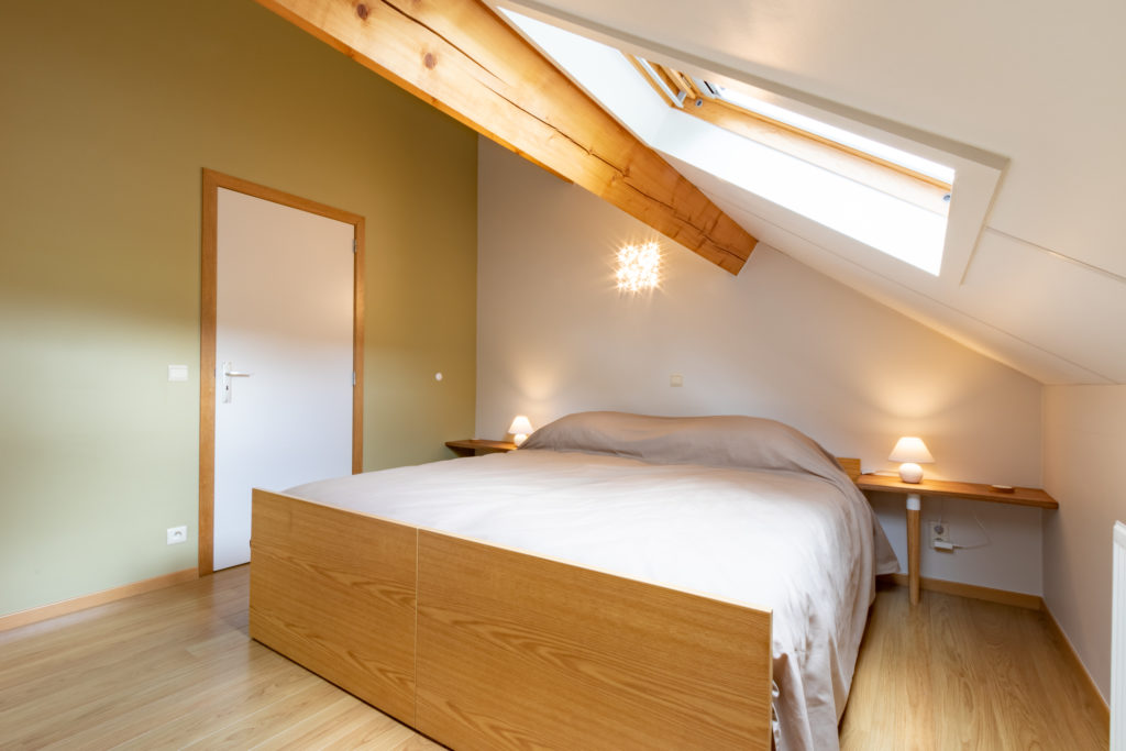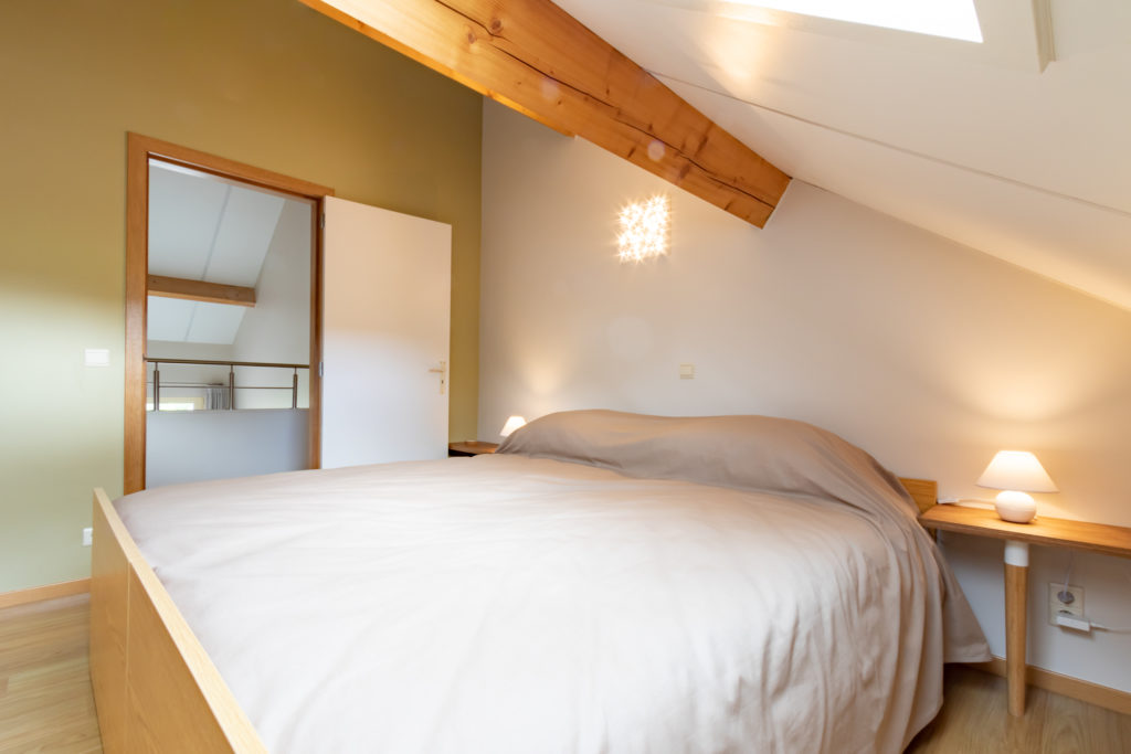 De retour à la maison, chacun peut trouver son bonheur dans les nombreux espaces. On peut jouer ensemble au chef cuistot dans la grande cuisine, prendre le temps de partager un bon repas dans un espace de vie lumineux ouvrant sur la vallée et le jardin, se reposer sur la terrasse dégagée ou dans l’une des quatre grandes chambres, se retrouver avec les enfants dans la salle de jeux sympa.