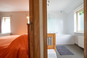 Sous le gîte se trouve un studio privé avec une entrée séparée et sans vue sur le jardin. Il n’est pas habité en permanence et n’est pas à louer.