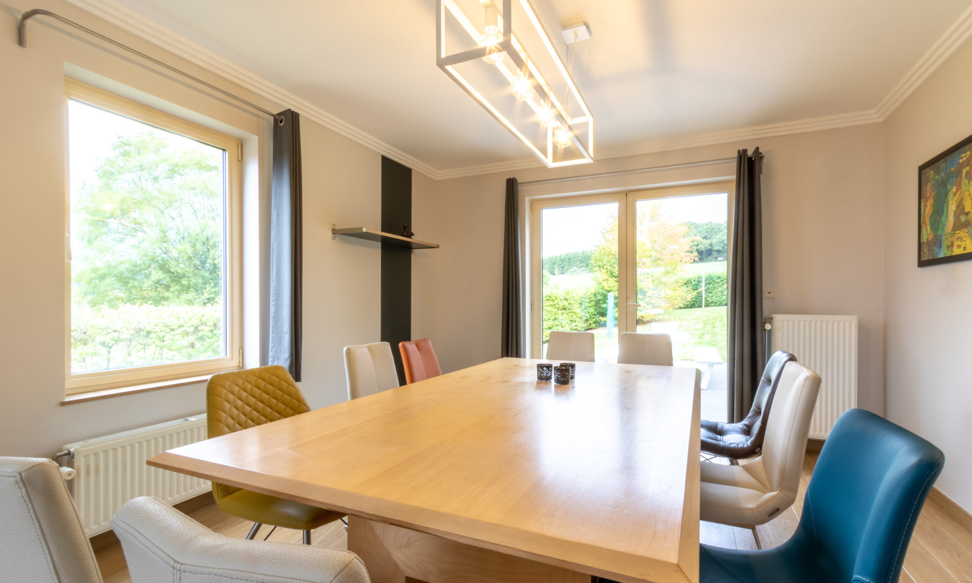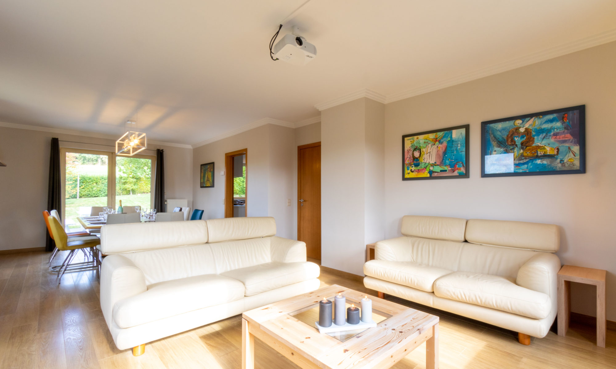 Printemps, été, automne, hiver. Quatre saisons pour vous donner le temps de vous évader. « À quatre temps » est l’endroit idéal. Cette habitation de 2005 vient d’être aménagée comme maison de vacances avec des matériaux de qualité supérieure. Elle est devenue le point de départ parfait pour des promenades interminables dans la nature, du VTT exigeant, du vélo tranquille sur le RAVel, pour une sortie culturelle à l’abbaye de Stavelot ou dans les villes avoisinantes de Bastogne ou Spa, ou encore pour frissonner en découvrant le sport de haut niveau sur le circuit de Spa-Francorchamps ou le long d’une des classiques wallonnes, sans oublier le shopping au Luxembourg.
