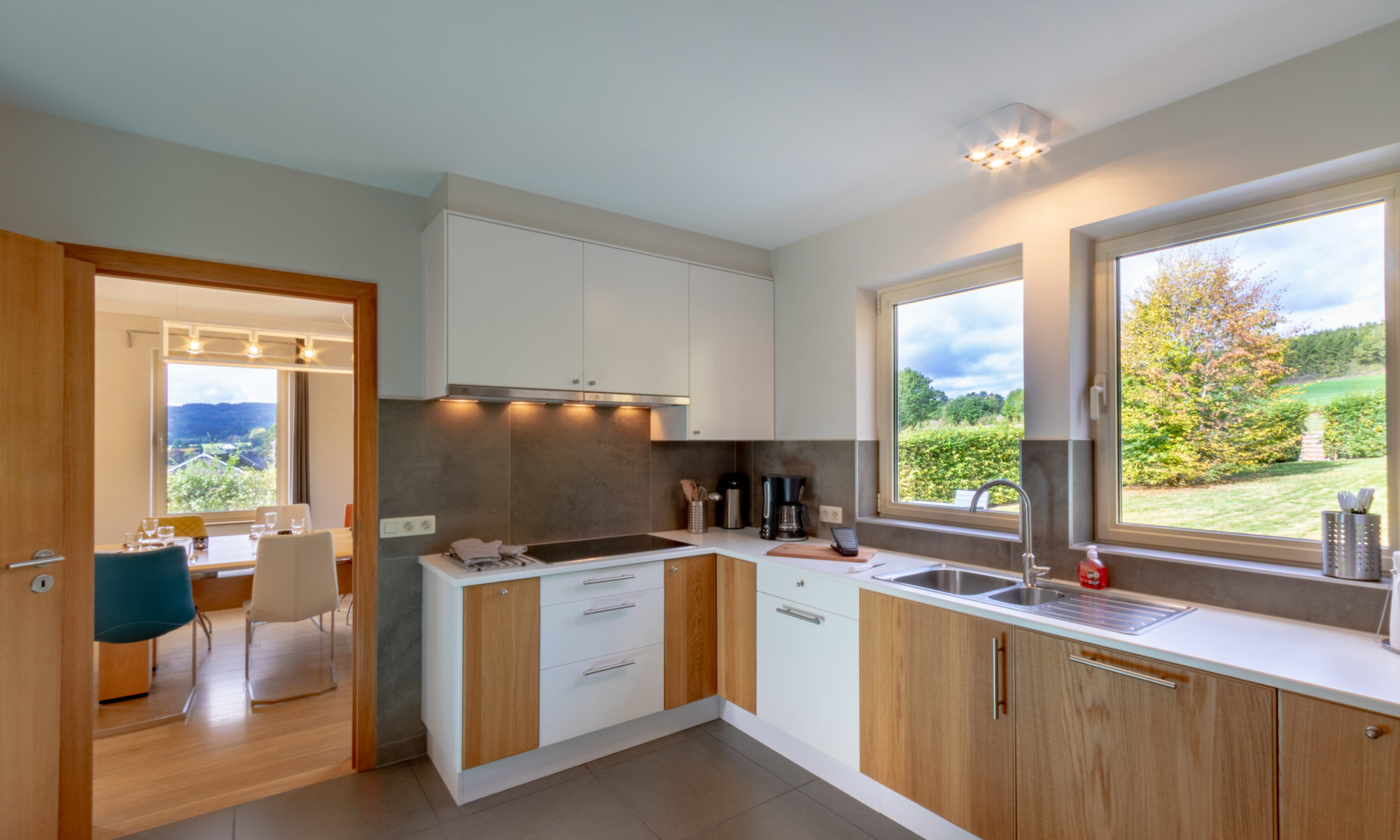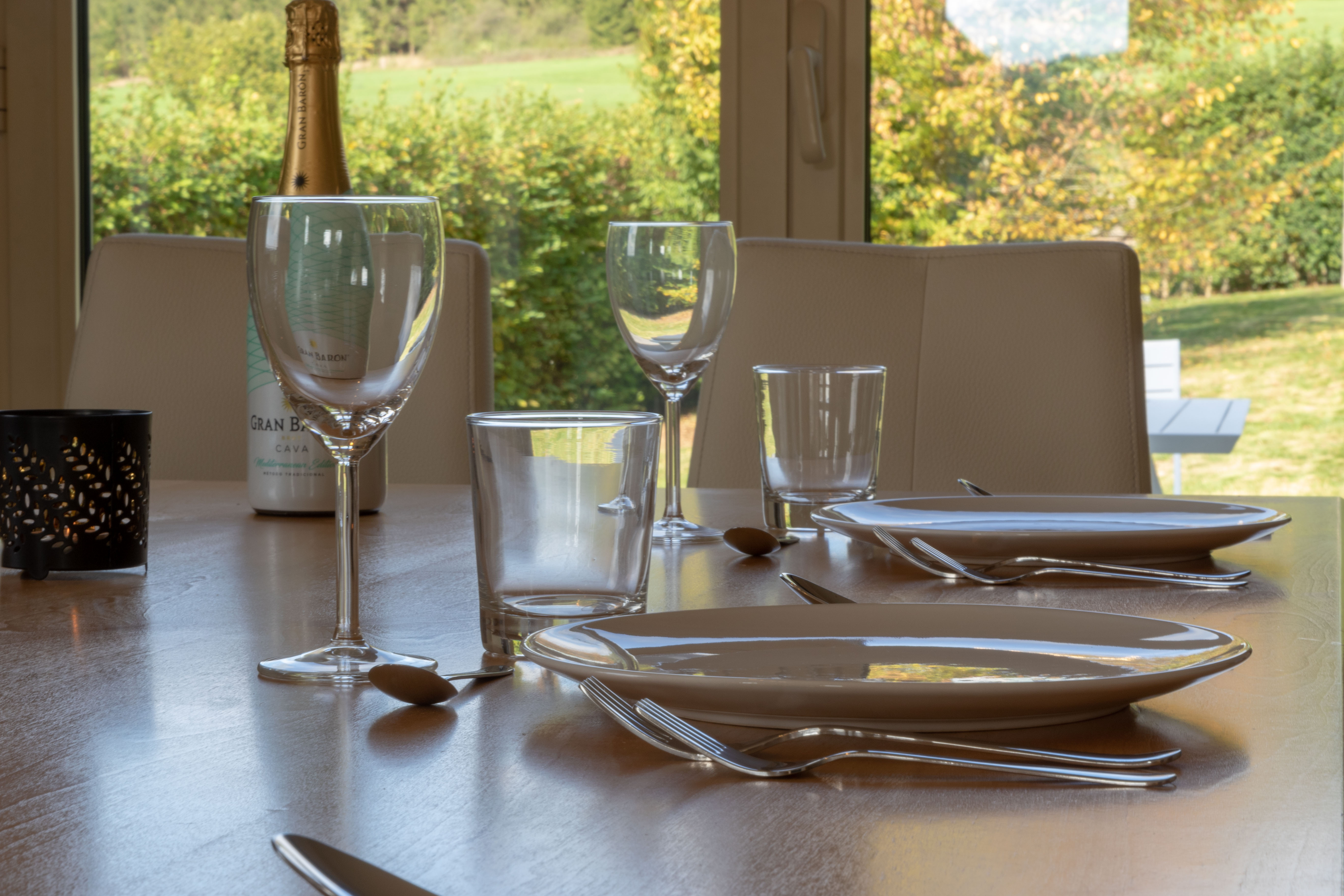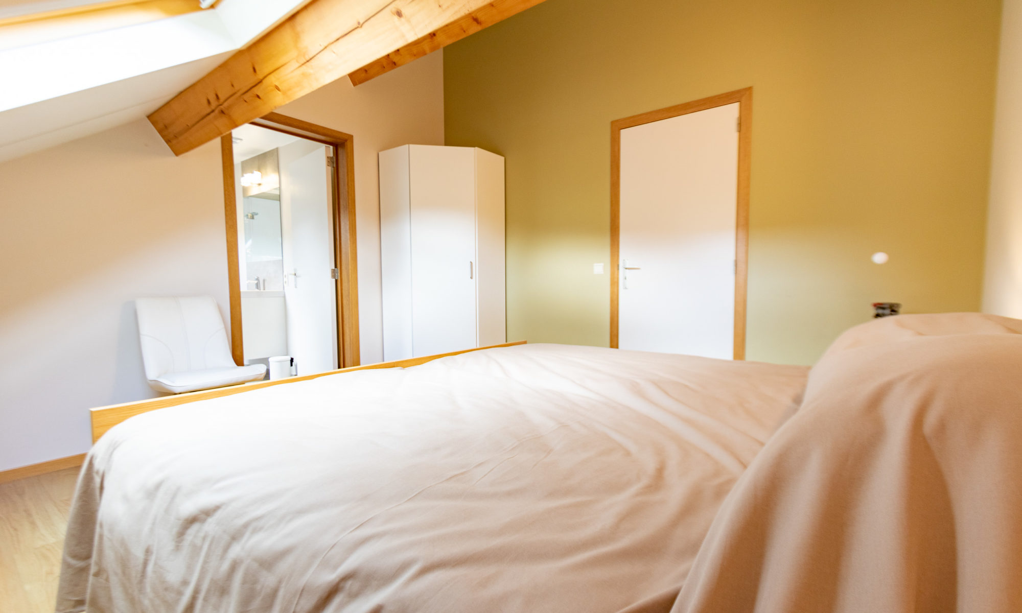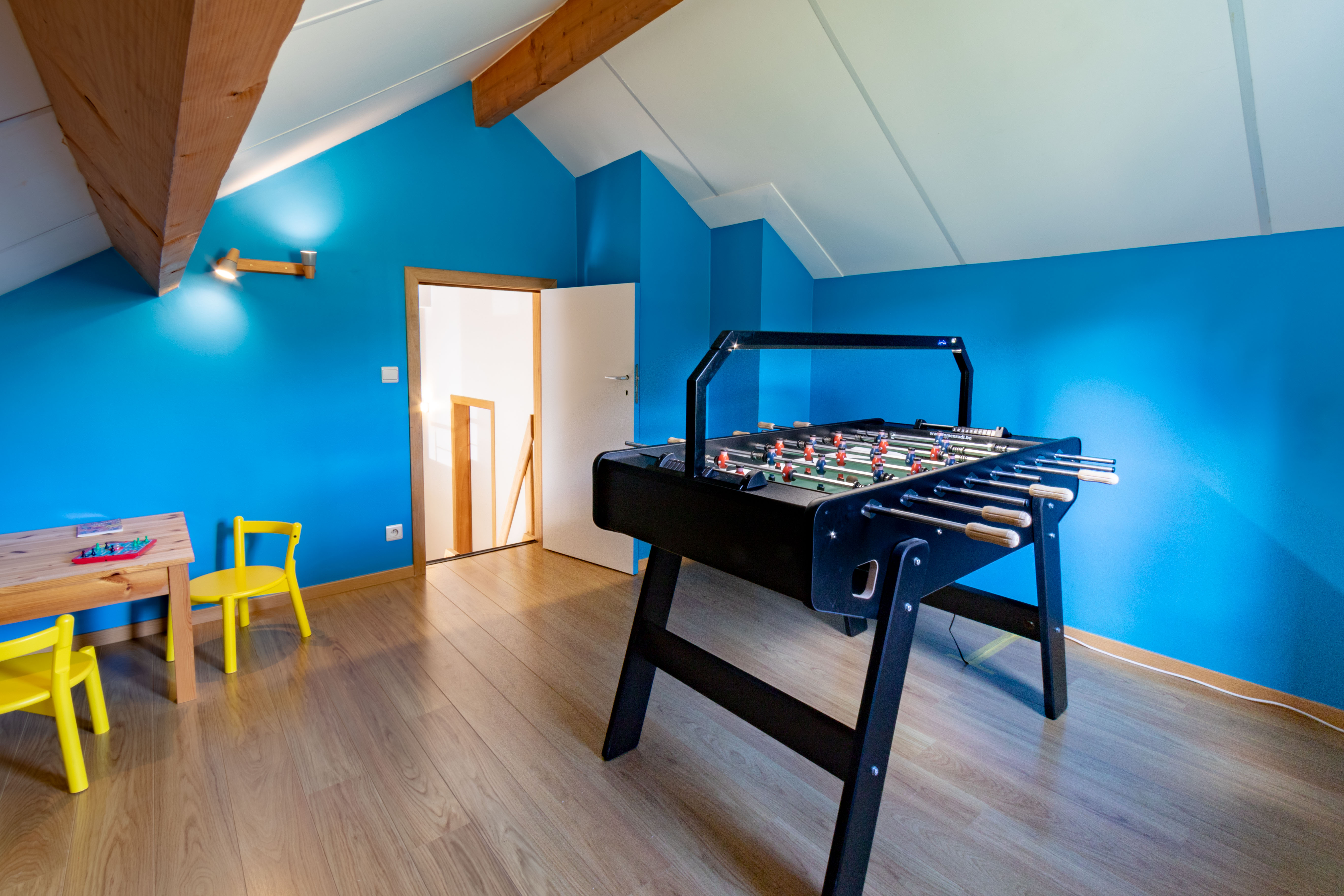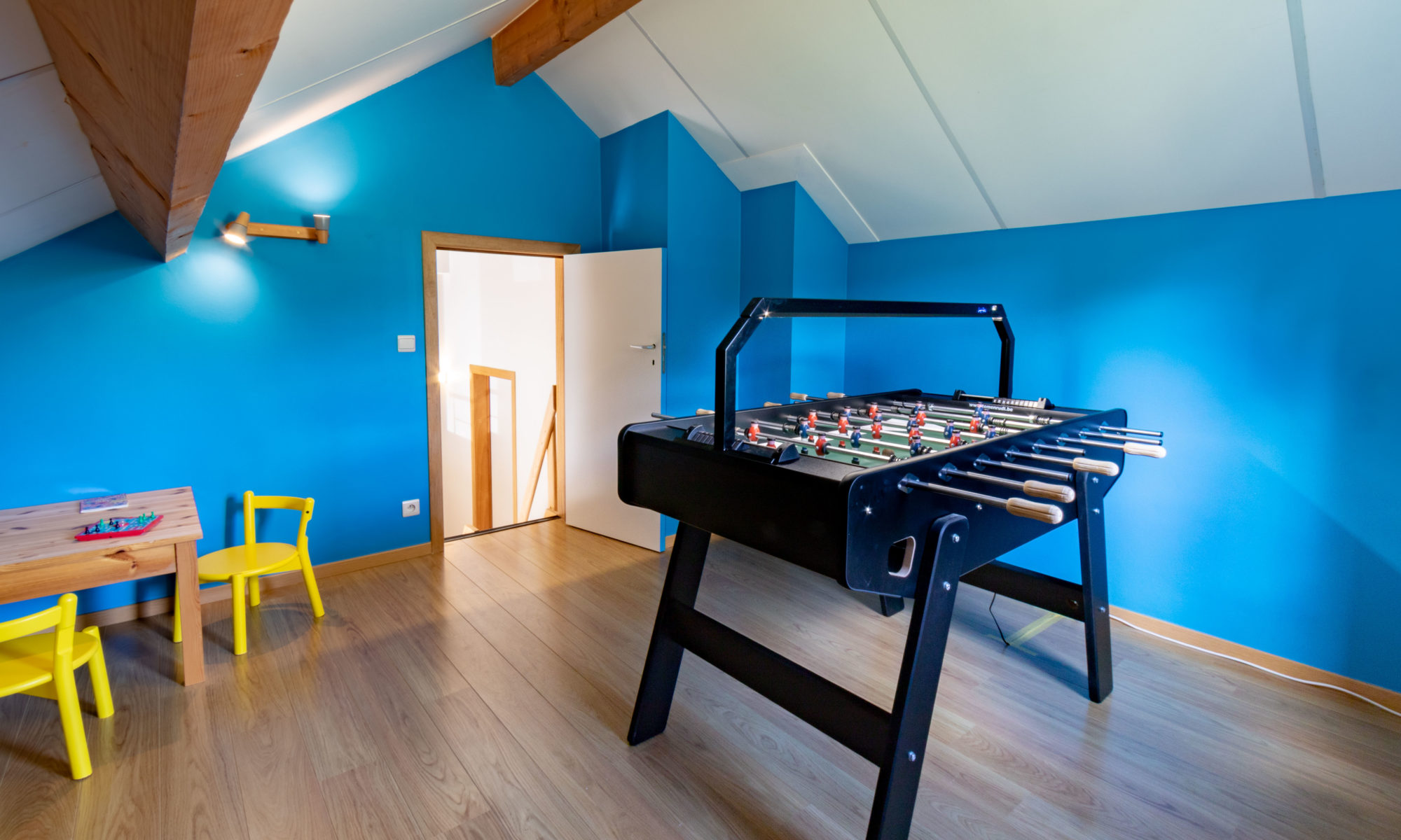 De retour à la maison, chacun peut trouver son bonheur dans les nombreux espaces. On peut jouer ensemble au chef cuistot dans la grande cuisine, prendre le temps de partager un bon repas dans un espace de vie lumineux ouvrant sur la vallée et le jardin, se reposer sur la terrasse dégagée ou dans l’une des quatre grandes chambres, se retrouver avec les enfants dans la salle de jeux sympa.