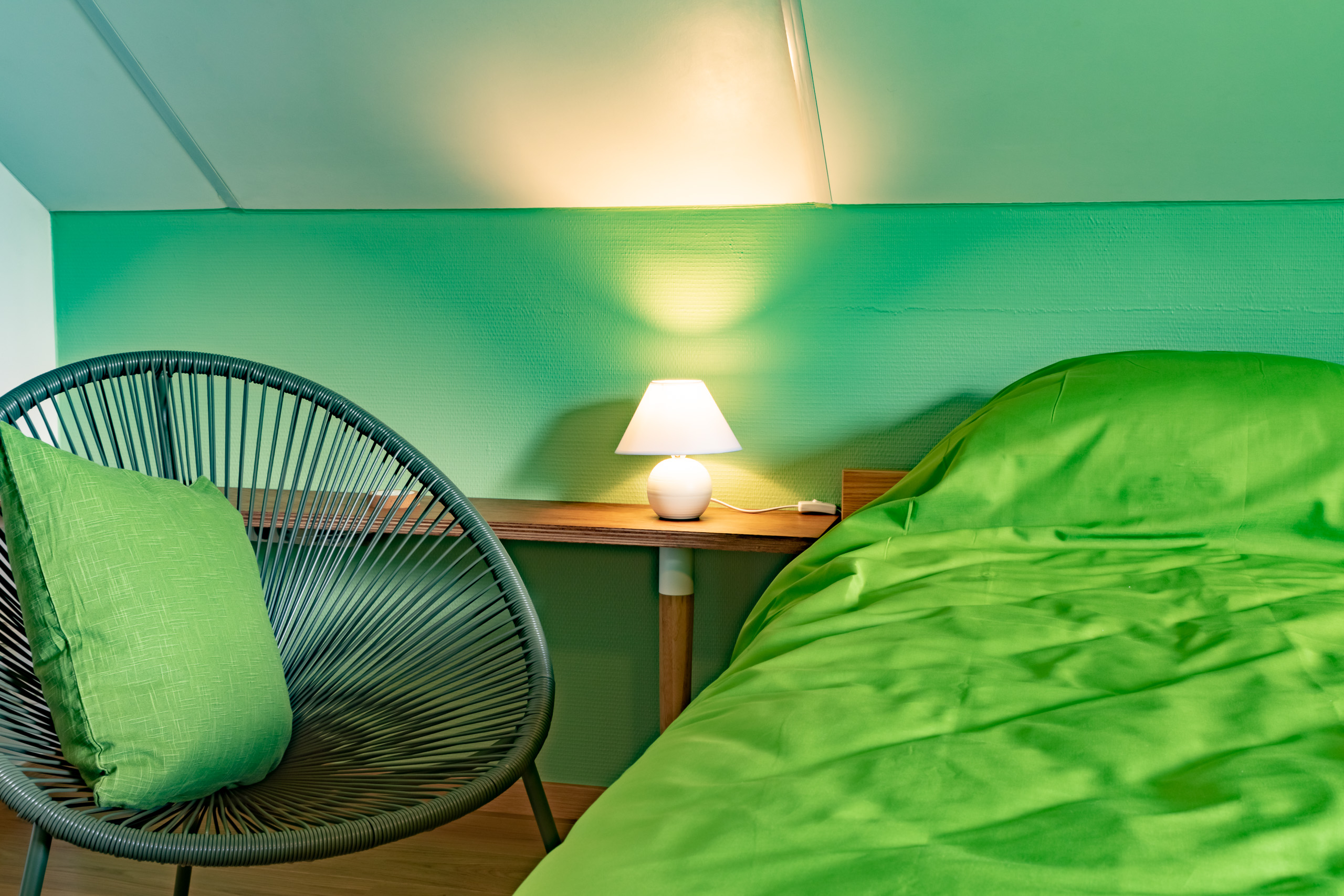 Sous le gîte se trouve un studio privé avec une entrée séparée et sans vue sur le jardin. Il n’est pas habité en permanence et n’est pas à louer.